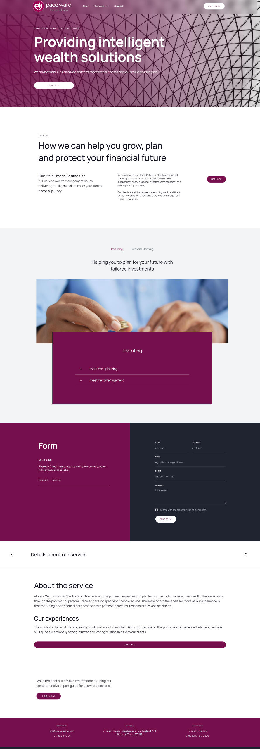 I was requested to create modernised website design for a financial solutions company, with a user friendly interface to be able to show case their team of advisors with online virtual meetings feature set up through the site.