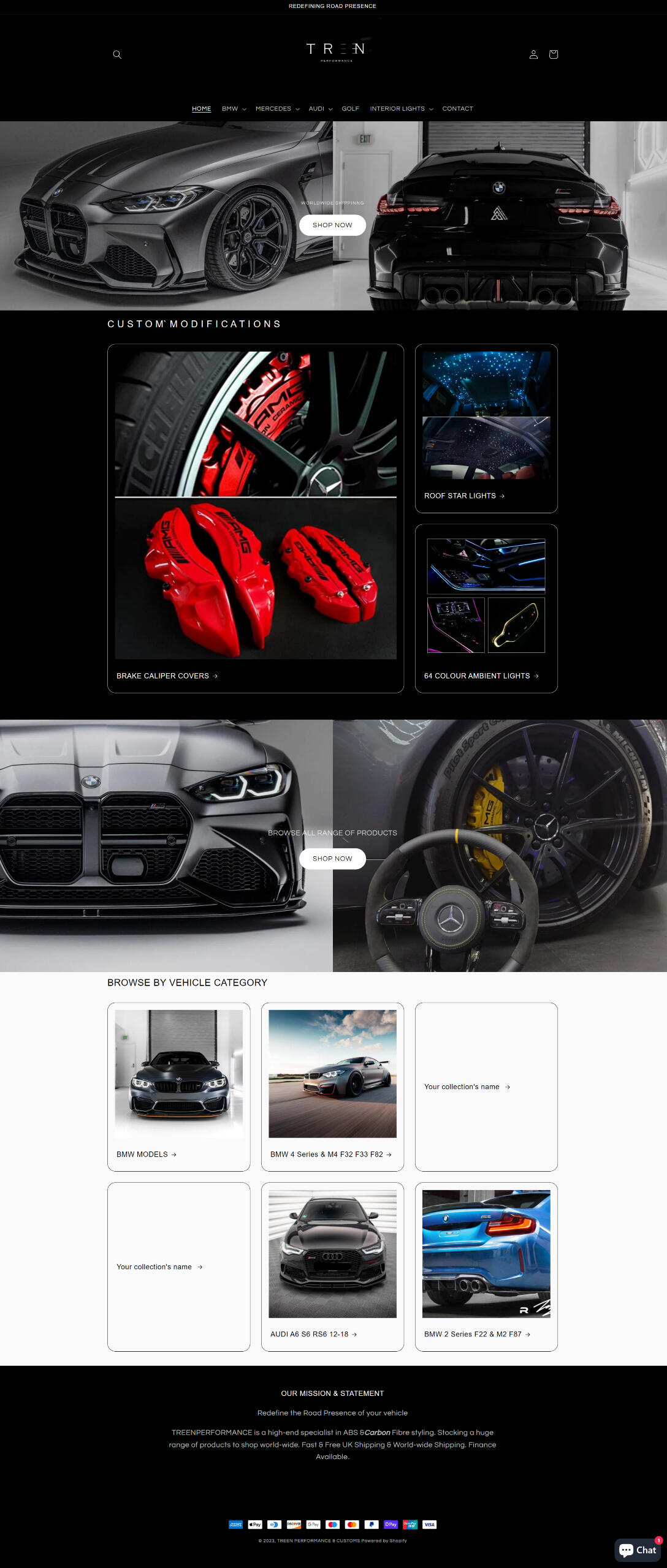 At Treen Performance the project idea was creating a ecommerce website for vehicle modifications. The sites design was tailerd to suit the car enthusiasts with a simple to use checkout system to make fast purchases trouble free.